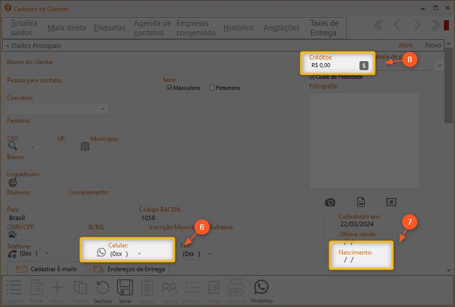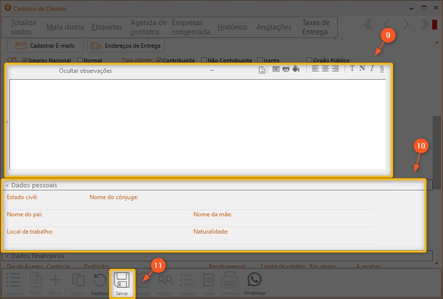 7 – Para ambos os cadastros é interessante que você insira o número de WhatsApp no campo CELULAR devido as integrações que o sistema possui com o WhatsApp.
