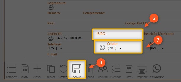 7 – É interessante inserir também o número do WhatsApp no campo CELULAR devido as integrações que o sistema possui com o WhatsApp.