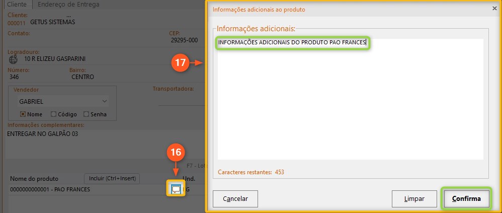 17 – Clicando nesse ícone será aberto uma caixa de texto para que você insira as INFORMAÇÕES ADICIONAIS, depois de inserir basta clicar em CONFIRMA.