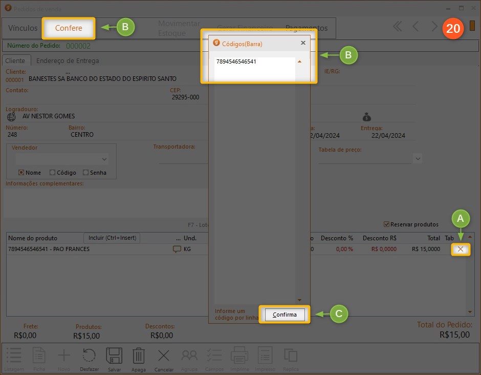 16 – No pedido de venda será liberado um ícone de BALÃO na frente de cada produto inserido.
