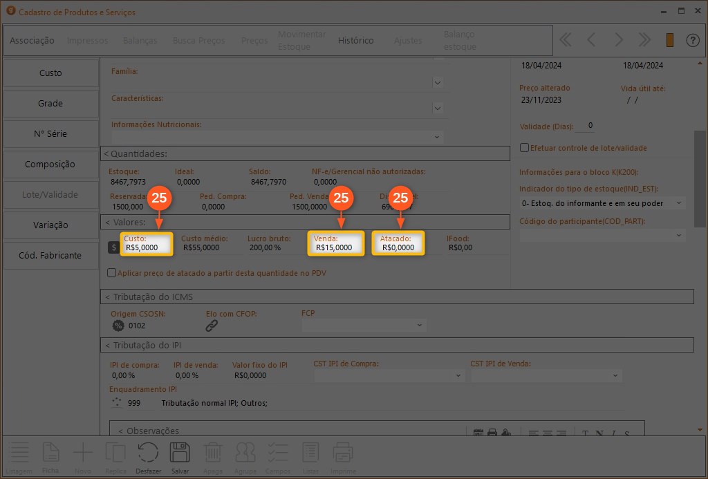 25 – É necessário que seu produto tenha os campos CUSTO, VENDA e ATACADO com os valores já definidos.