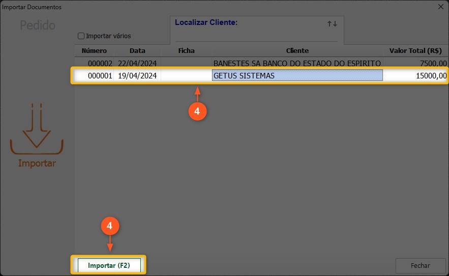 4 – Selecione qual será o pedido de venda que será faturado e clique em IMPORTAR.