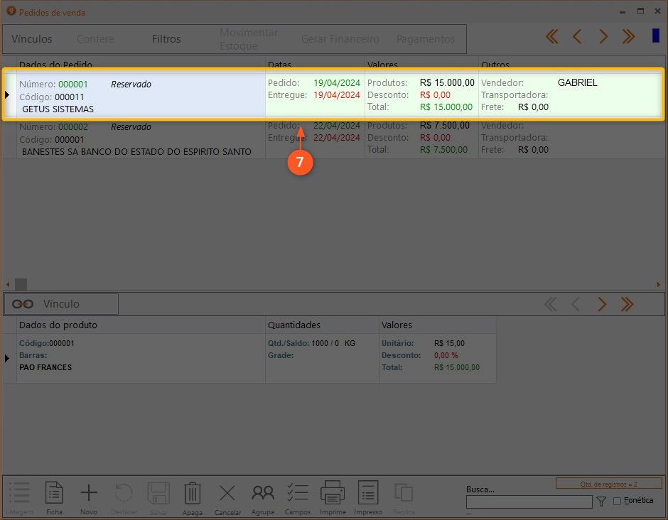 7 – Depois de faturado o pedido de venda fica na cor VERDE no módulo.