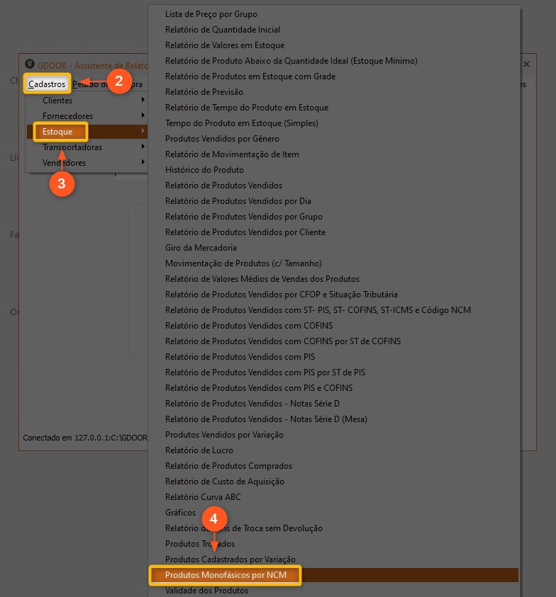 4 – Selecione o relatório PRODUTOS MONOFÁSICOS POR NCM.