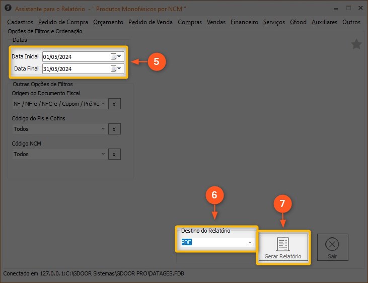 5 – Defina o PERÍODO que deve ser utilizado para gerar o relatório.