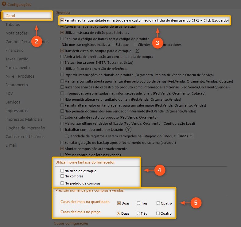 5 – Você pode definir a quantidade de casas decimais que serão exibidas nas QUANTIDADES ou PREÇOS dos produtos no sistema, basta selecionar a opção que melhor te atende.