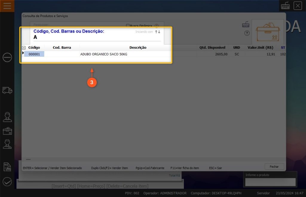 4 – Após inserir todos os produtos que necessita, aperte a tecla F3 do seu teclado.