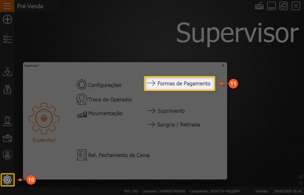 11 – Selecione a opção FORMAS DE PAGAMENTO.