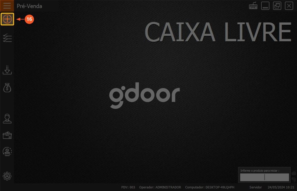 16 – Clique em INICIAR PRÉ-VENDA ou aperte a tecla F2 do seu teclado.