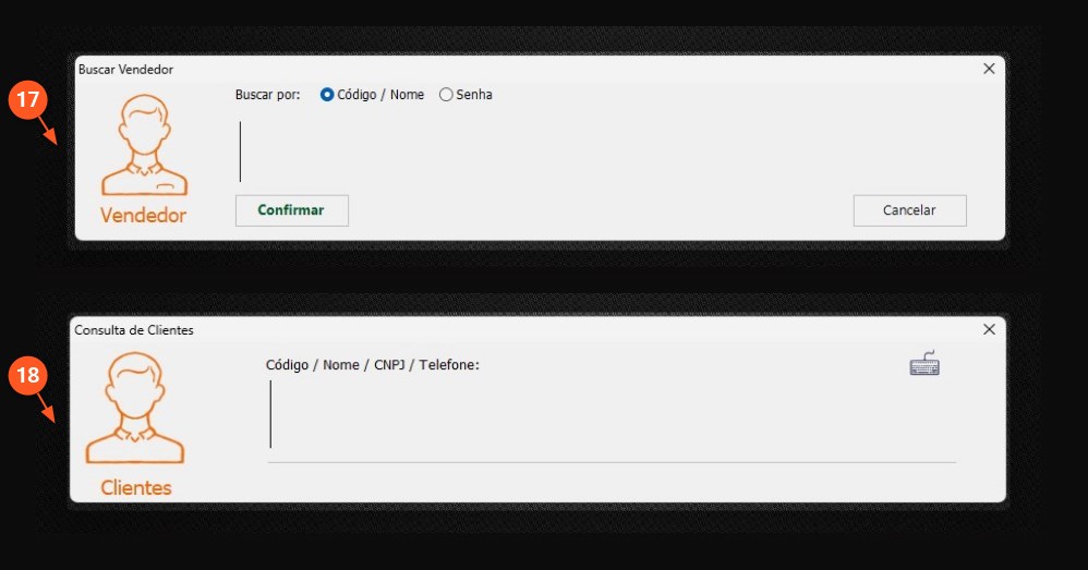 17 – Informe o VENDEDOR, caso esteja configurado para solicitar o VENDEDOR NA ABERTURA DA PRÉ-VENDA.