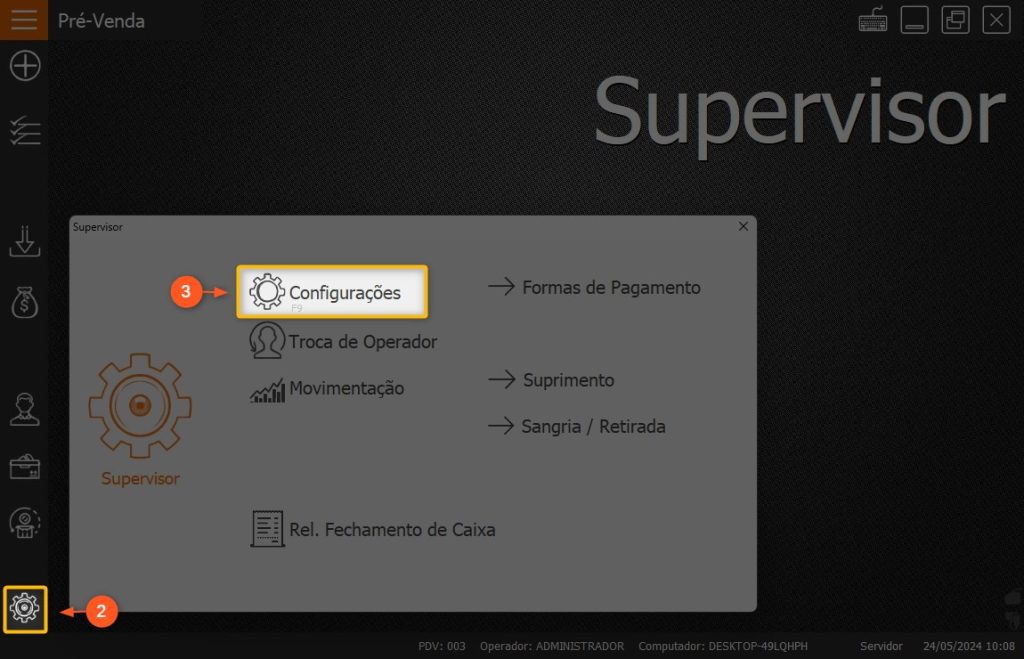 2 – Clique em CONFIGURAÇÕES no canto inferior esquerdo.