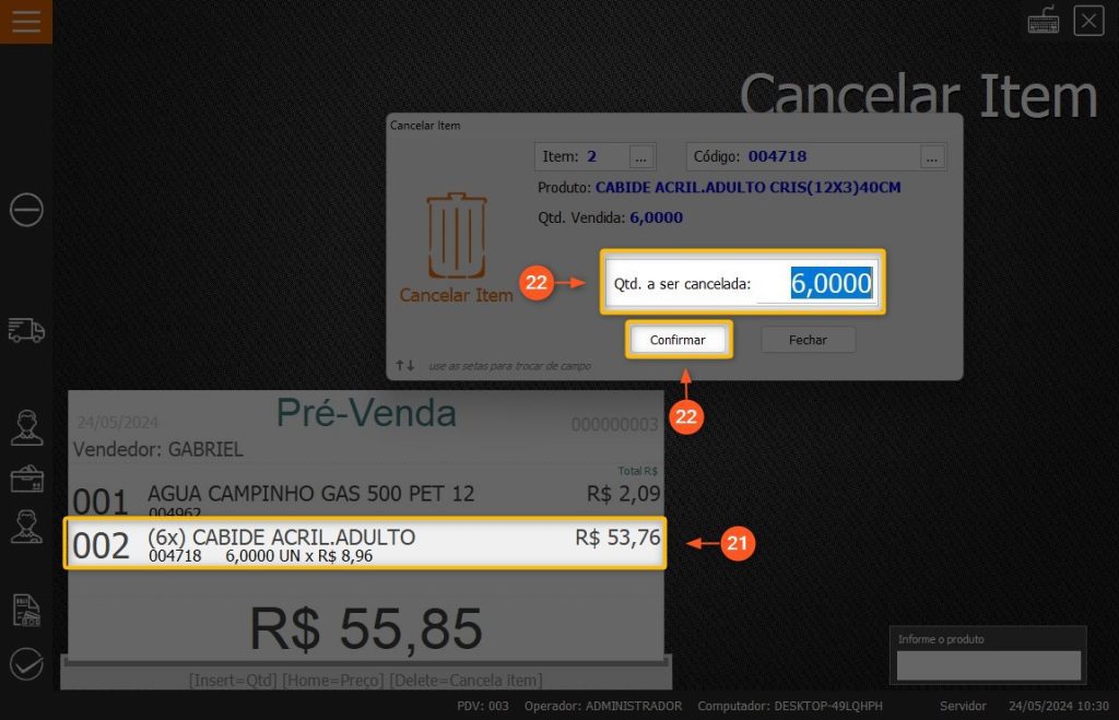 22 – Informe a quantidade que deve ser CANCELADA e clique em CONFIRMAR.