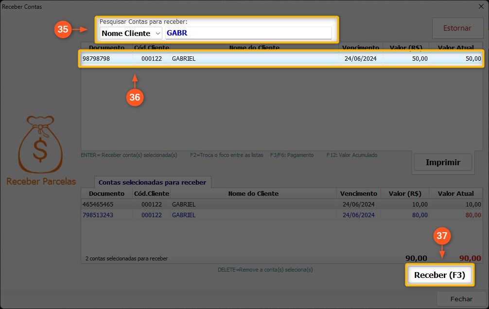 35 – Defina por qual tipo de informação você irá buscar as parcelas, pode ser por exemplo pelo NOME CLIENTE.