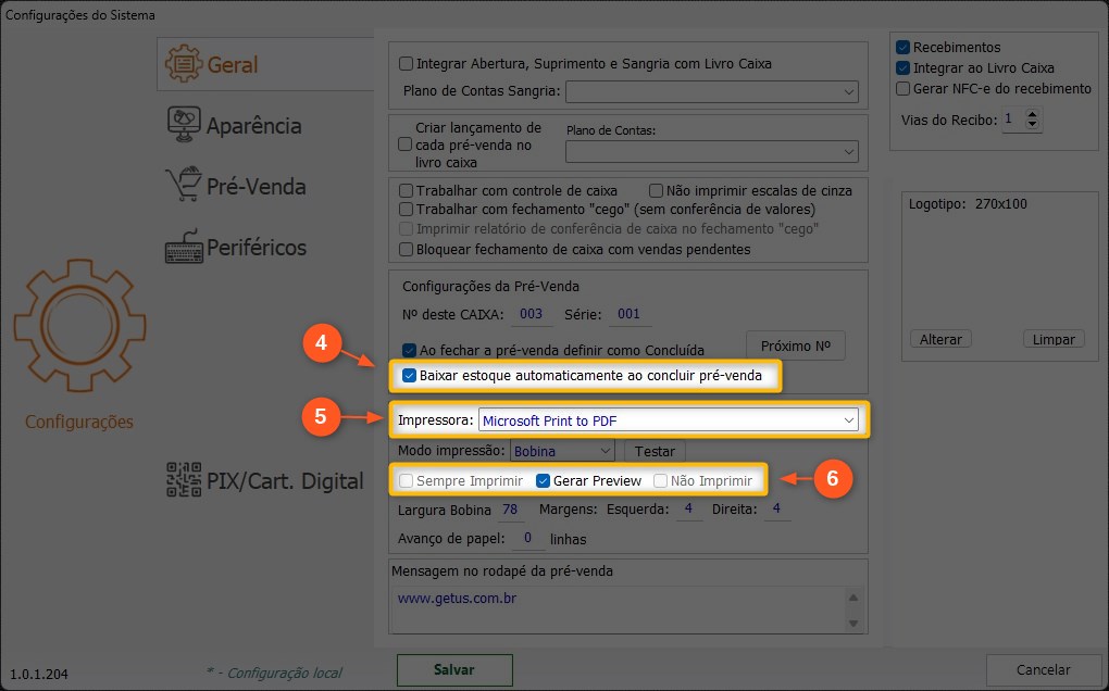 5 – Defina a impressora responsável por imprimir as PRÉ-VENDAS.