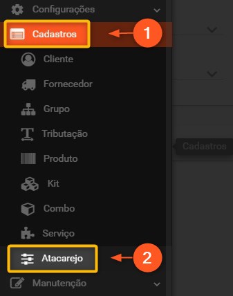 1 – Clique em CADASTROS.