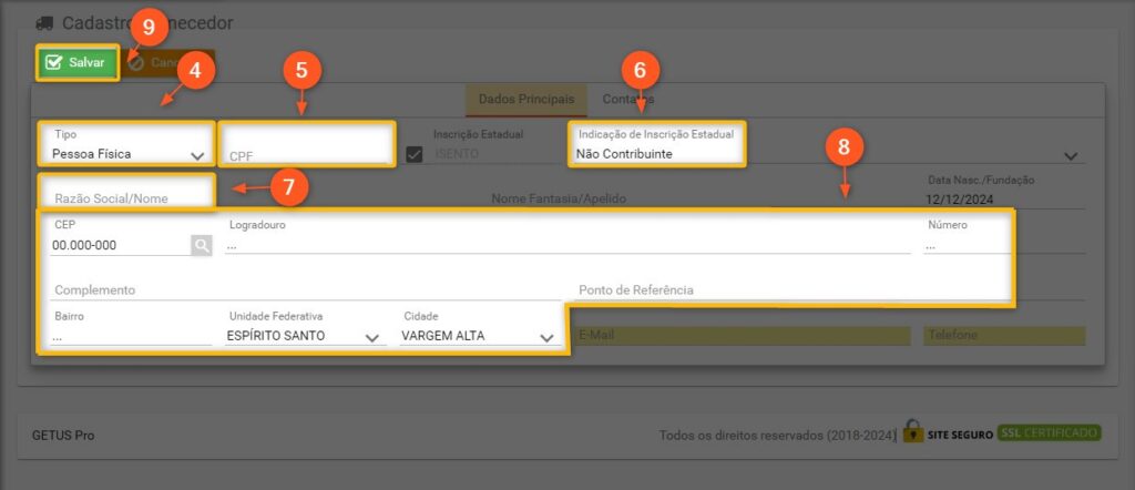 4 – Defina o tipo como PESSOA FISICA (CPF).