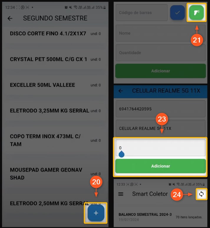 23 – Insira a QUANTIDADE do produto que foi escaneado e clique em ADICIONAR.